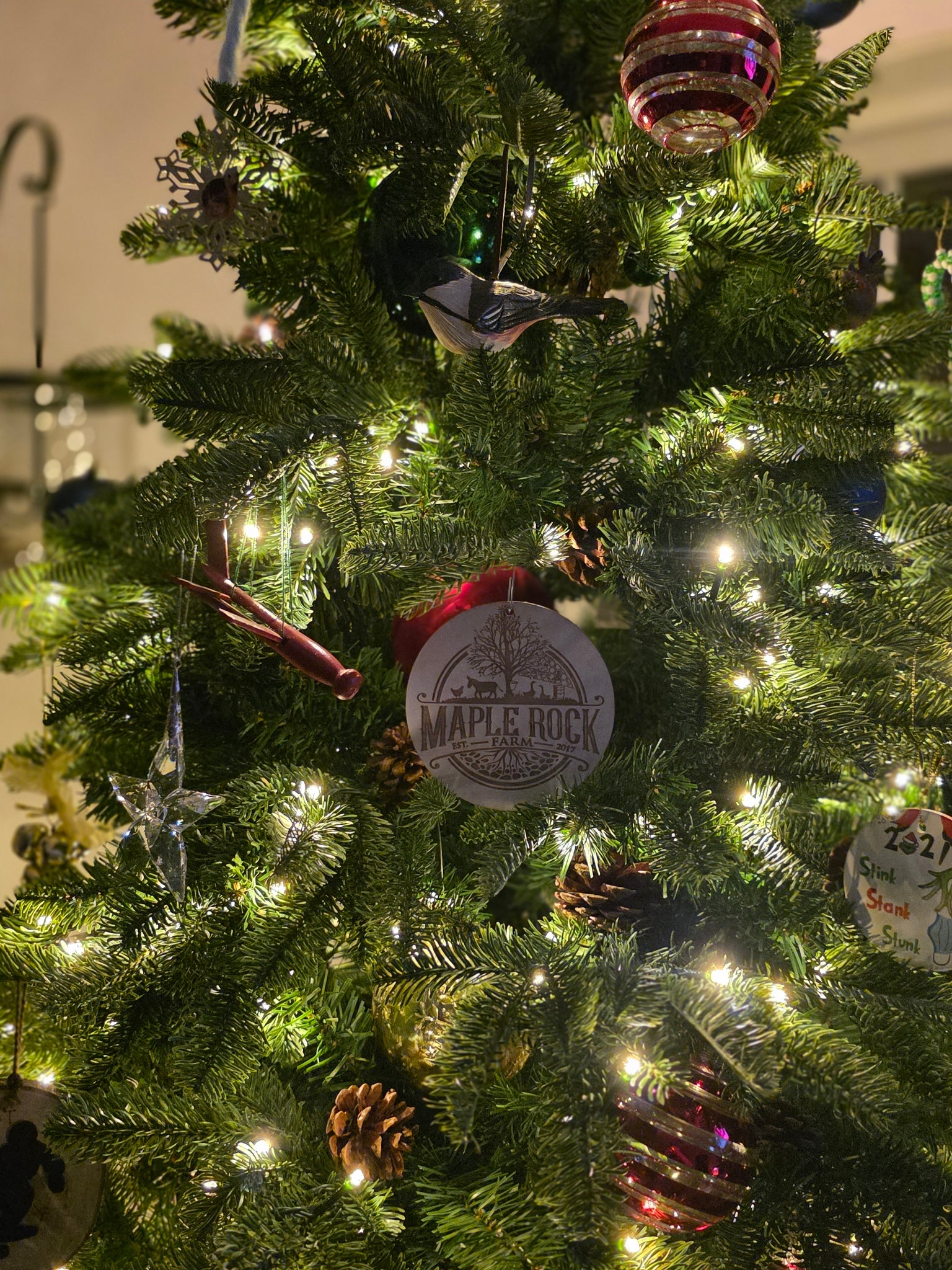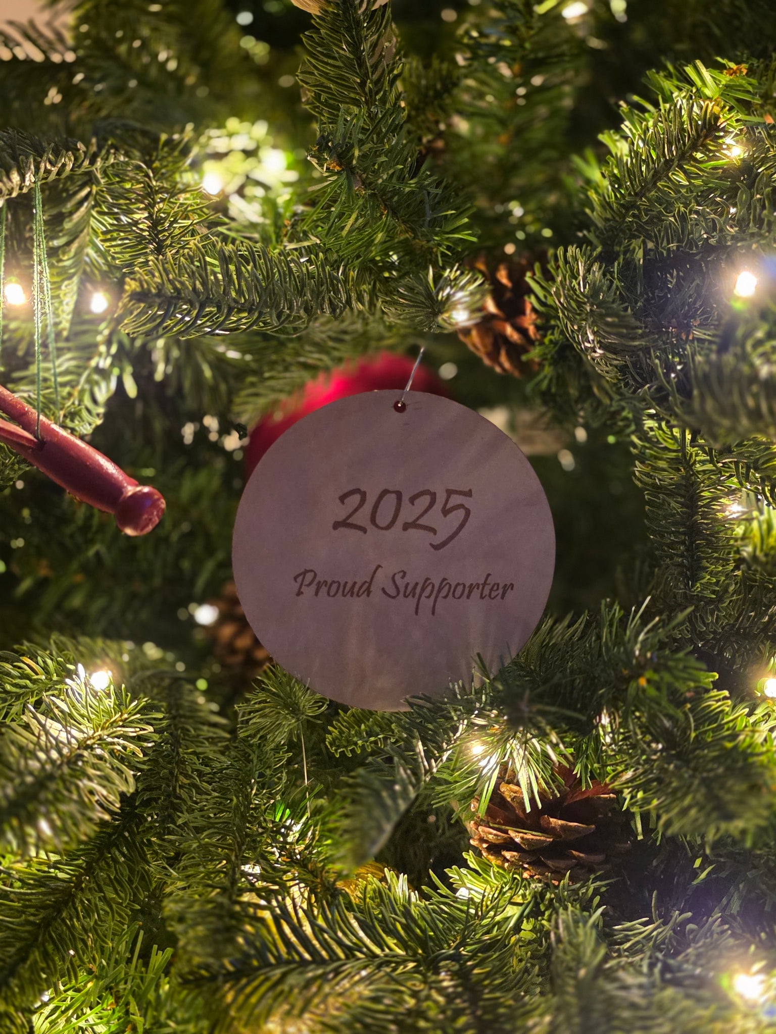 We are proud to offer these beautiful 4-inch wooden laser-engraved, stained, and sealed limited-edition ornaments for 2025.
